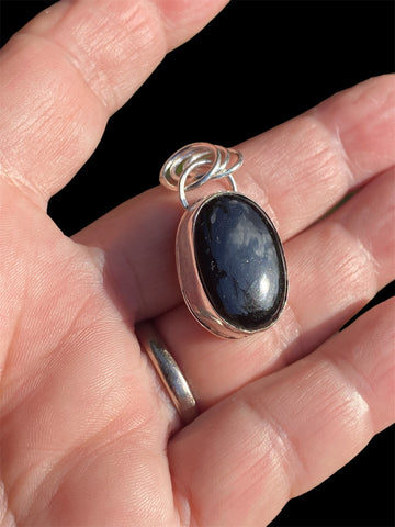 Hand fabricated using solid sterling silver and a lovely 26.77ct high polished black tourmaline. This pendant was a special order for Lori.