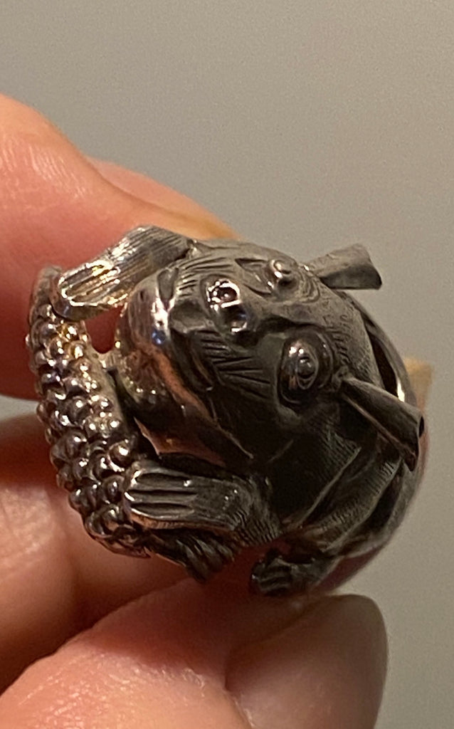 Small figural animals like this were popular novelty pieces produced in workshops around Hanau, which became famous for producing highly collectible 800 silver animal miniatures and novelty objects in the late 19th and early 20th centuries.