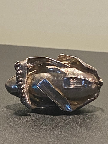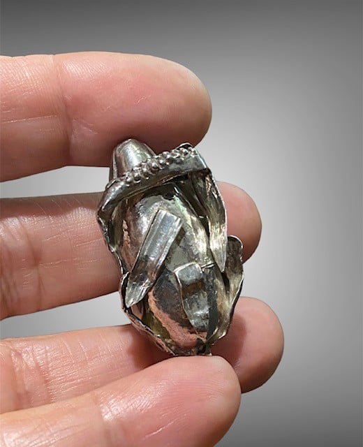 • Hollow silver construction with hand-chased detail