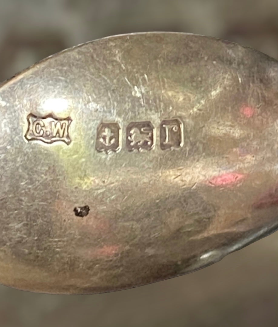 I love researching the origins of the vintage flatware I use in my jewellery. This teaspoon is hallmarked C.W (Charles Wilkes), anchor (Birmingham), lion passant (sterling silver), letter r (1916) Hardy Bros Ltd Made in England.