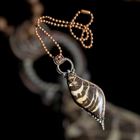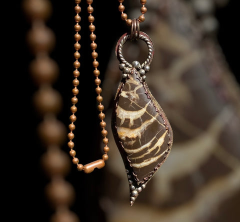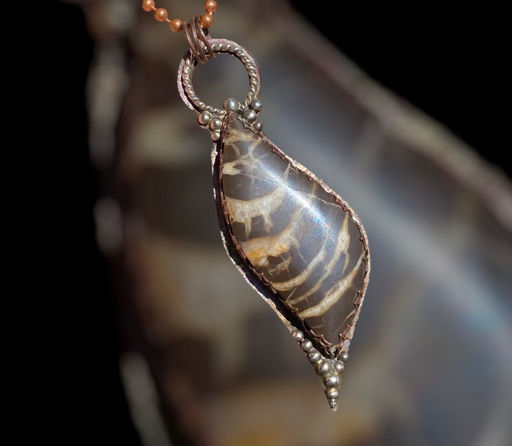 Handmade Septarian Dragon Stone Nodule Copper and Silver Pendant