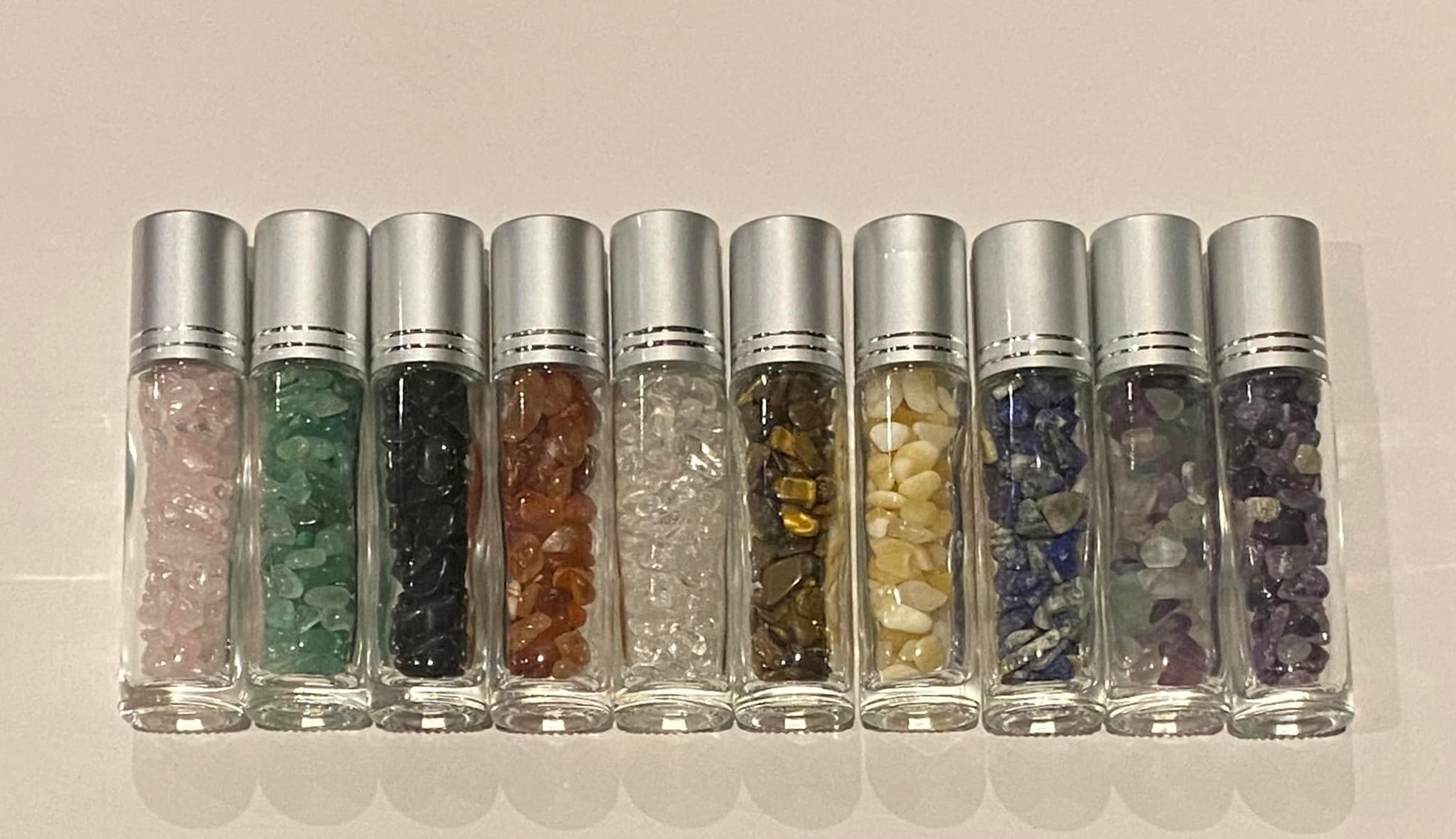 Natural Crystal Roller Perfume / Essential Oil Bottles 10 Varieties Available.