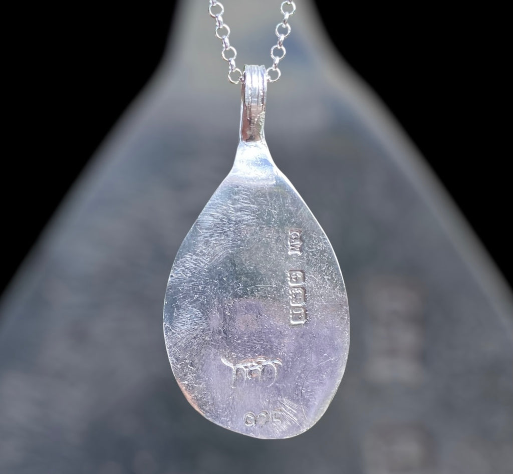 Handmade and designed one-of-a-kind Artisan Opal Pendant made with a Vintage sterling silver teaspoon. Includes a 42cm oval belcher link chain. (Opal supplied by Chris)