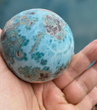 This beautiful Larimar sphere specimen is ethically sourced straight from the Dominican Republic. It weighs 460 grams;