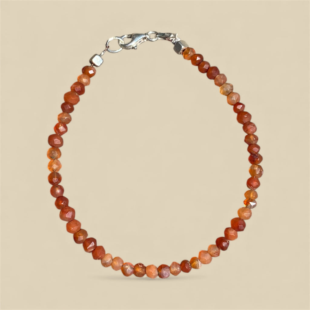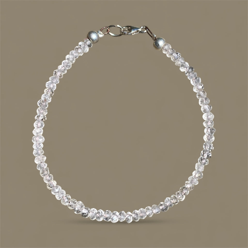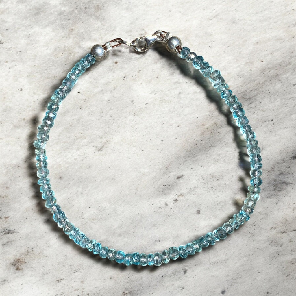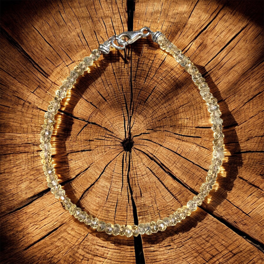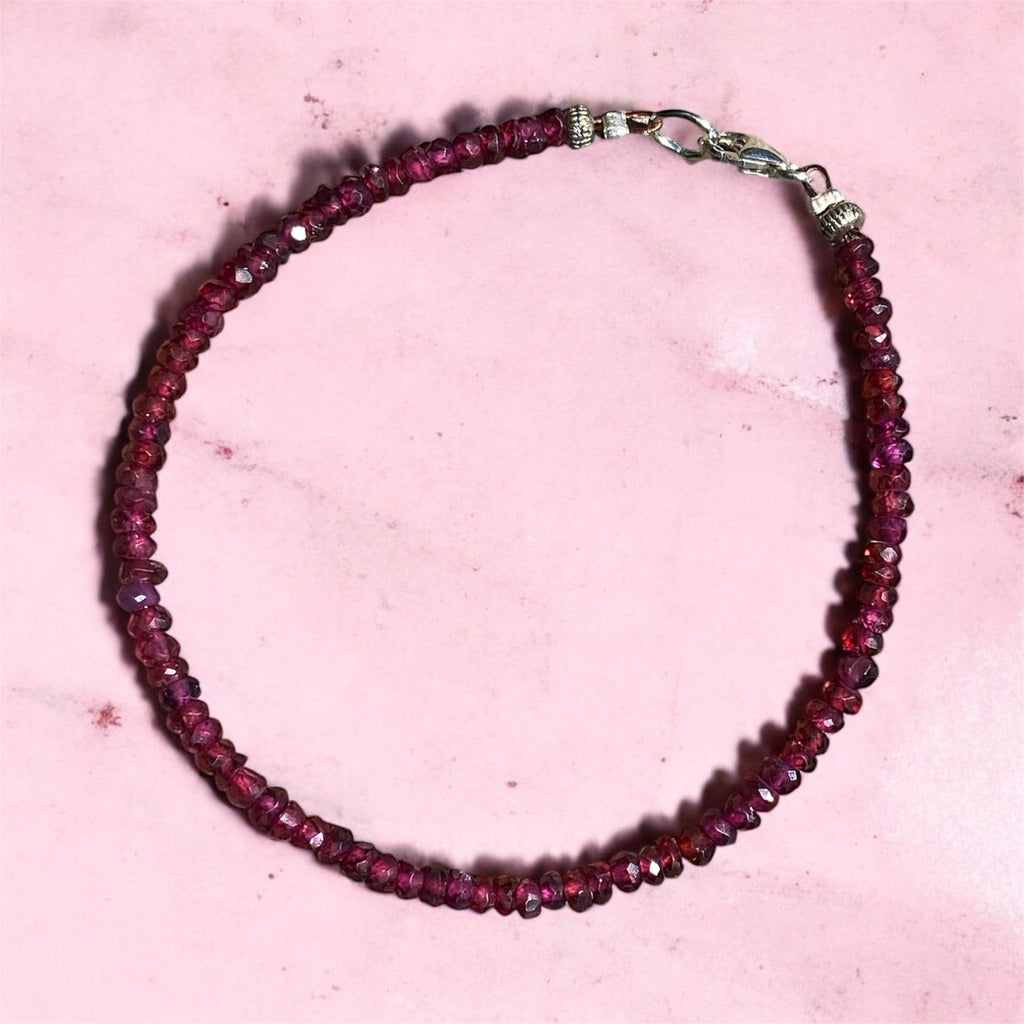 Handmade using semiprecious gemstones on a memory wire finished with a sterling silver lobster claw clasp. Measuring approximately 17-19cm long.